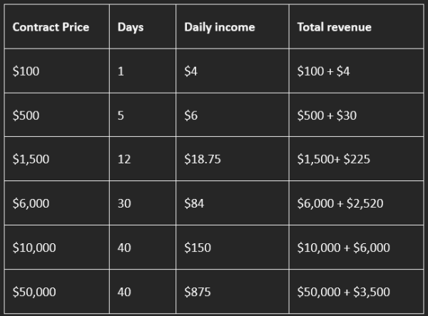 The contract income will be automatically credited to your account the next day. After your account balance reaches $100, you can withdraw it to your crypto wallet at any time, or continue to purchase contracts to roll over your income.